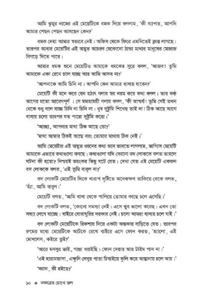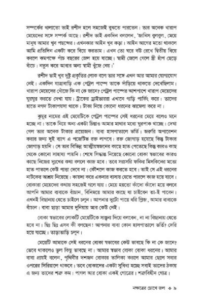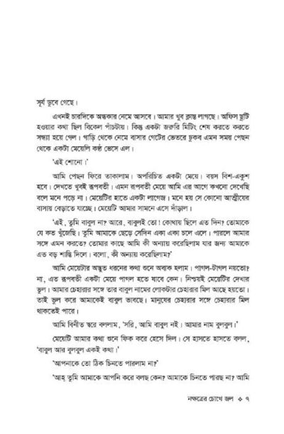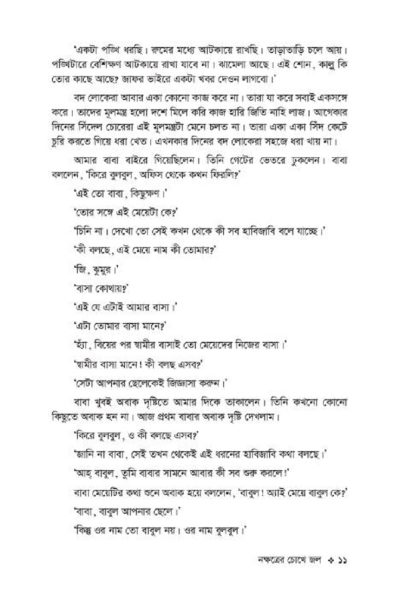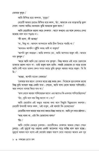 শ্রাবণ মাসের শেষ দিক। আকাশে সাদা মেঘ উড়ে বেড়ায়। রাতদিন ঝরঝর করে বৃষ্টি নামে। বৃষ্টির অশান্ত গতিপ্রকৃতিকে নিস্তব্ধ করে দেয়। বাইরে কেবল জলের হা হুতাশী ক্রন্দন শুনতে পাই। বৃষ্টি আমাকে ঘরের মাঝে বন্দি করে রাখে। একা একা আমি বসে জলের খেলা দেখি। আমার আস্তাহারা মন কেন যেন বারবার কেঁদে ওঠে। সে যেন কার শূন্যতা অনুভব করে। প্রকৃতি জলের ছোয়ায় সজীব হয়ে ওঠে। কিন্তু আমার মনটা সতেজ হয় না। মন তো কেবল ভালোবাসায় সতেজ হয়। আর সেই ভালোবাসার সন্ধানেই আমি নক্ষত্রের চোখে জল লিখলাম।
