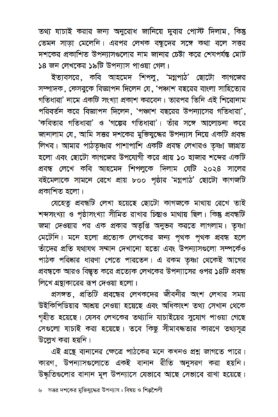 বাংলা ছোটগল্প নিয়ে অনেক প্রশ্ন উঠছে সম্প্রতি, গল্পে বাস্তববোধকে রূপায়িত সম্ভব, নাকি গল্প ছাড়া ছোটগল্প এগিয়ে যাবে এবং তা নতুন রীতির গল্প বলে আখ্যা পাবে, বাস্তব কথা মেনে চলা বড়ই কঠিন, হয়তো তা সম্ভব নাও হতে পারে, রূঢ় সত্য হলো সময়ই সঠিক মূল্যায়ন করবে।
