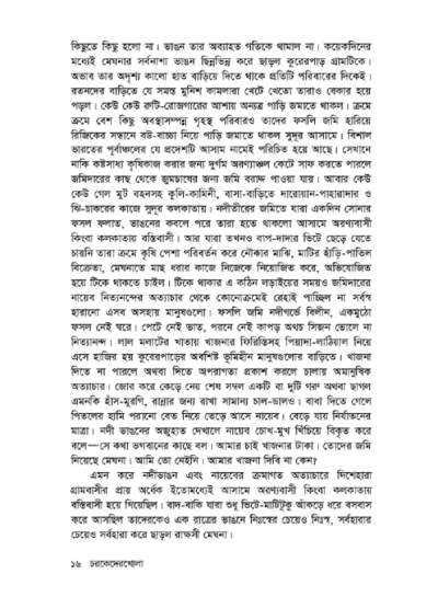 উপন্যাসটির পরতে পরতে বর্ণিত হয়েছে অসংখ্য লোকজ কাহিনী-আচার, কুসংস্কার, অন্ধ বিশ্বাস, পশ্চাদপদতার ভেতর দিয়ে এগিয়ে যাওয়া মেঘনা চরের প্রান্তিক মানুষের জীবন সংগ্রাম, তাদের অস্তিত্বের লড়াই, সেই সাথে শোসক ও শোষিতের নিরন্তর কাহিনী চিত্র। বর্ণিত হয়েছে প্রেম-ভালোবাসাসহ মানুষের চিরন্তন স্বপ্ন ও সম্পর্ক, স্বপ্ন ও সম্পর্ক ভঙ্গ বা নষ্ট হয়ে যাওয়ার নিদারুন হাহাকার এবং যাপিত জীবনে ঘটে যাওয়া শত দুঃখ-কষ্টের এলিজিও।