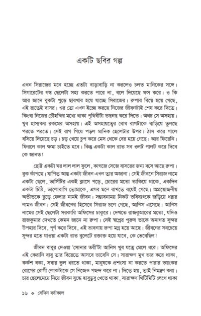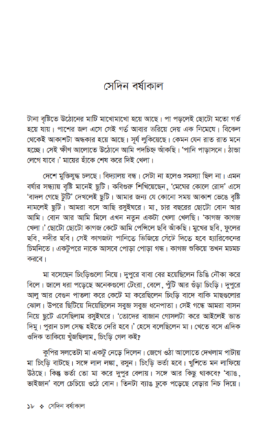 ‘সেদিন বর্ষাকাল’ বইয়ের গল্পগুলো দেশের, মাটির কথা বলে। জাতীয় পর্যায়ে বিভিন্ন উল্লেখযোগ্য সময়ের অভিজ্ঞতার বয়ান জানান দেয়। বায়ান্ন, একাত্তর হয়ে এই বর্তমান সময়ের অনুভূতির উচ্চারণ করে। প্রাপ্তি বা অর্জনের পাশাপাশি হতাশা, আক্ষেপ, সংশয়ের উপলব্ধিতে নাড়া দেয়।